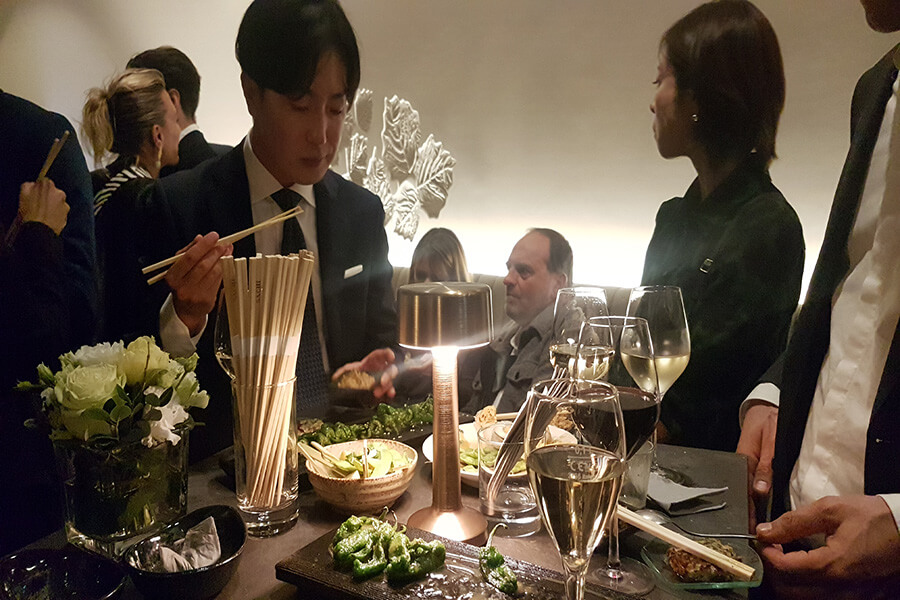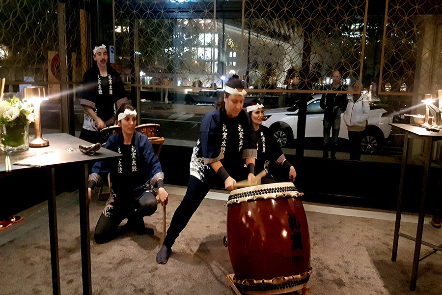 A l’occasion de l’inauguration du SACHI, David Collas, Directeur Général du Mandarin Oriental Genève a accueilli, en présence du Chef Mitsu, les habitués, amis, clients et partenaires de l’Hôtel. C’est entre connaissances et réjouissances qu’ils se sont retrouvés dans une chaude ambiance conviviale dégustant les délicieuses spécialités proposées. Pour le plus vif plaisir des invités. En fin de soirée, une démonstration de tambours japonais a créé la surprise avec ces grands instruments dénommés taiko. Issus des temples bouddhistes, ils relèvent, selon le ressenti, de l’art martial, de la musique ou… de la danse ! Combinant différentes grandes caisses, ces groupes – dont Kodo est le plus connu – sont à la mode grâce aux festivals traditionnels se produisant partout dans le monde. Originalité et créativité sont au Mandarin Oriental Genève les maîtres mots, sans oublier que SACHI veut dire bonheur, bénédiction et bonne fortune en japonais ! Impossible de passer à côté !