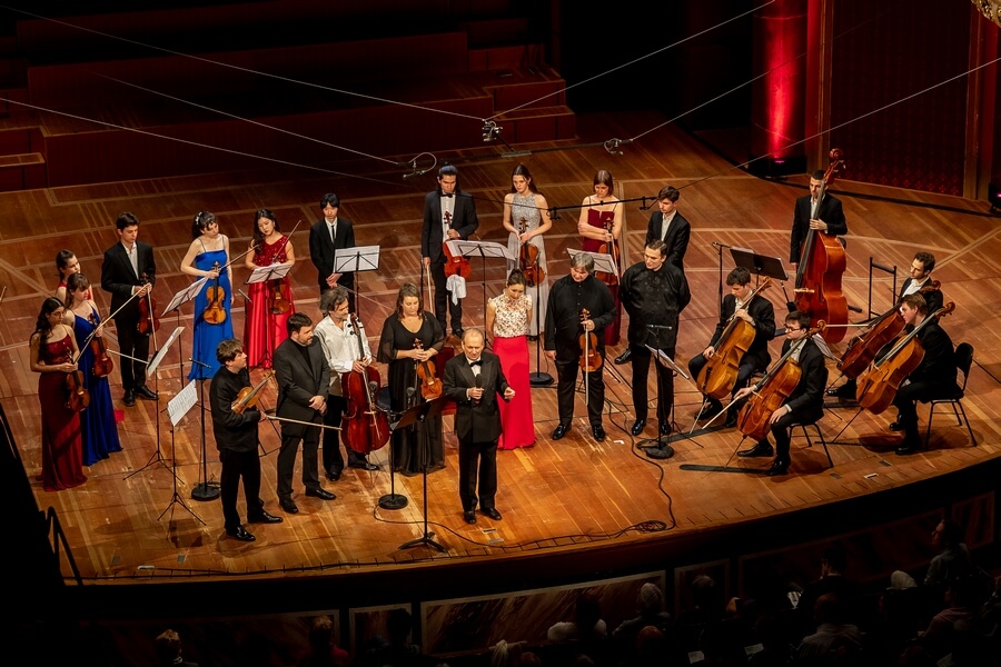 A la direction de ce 40e Concert Fondation Patiño, le remarquable Oleg Kaskiv, boursier de l’International Menuhin Music Academy sous l’égide d’Alberto Lysy. Il est aujourd’hui Directeur Musical de cette même académie ainsi que professeur de violon principal et soliste. Entre autres invités exceptionnels, la rencontre de mars 2024 a accueilli Jeremy Menuhin, le fils de Yehudi Menuhin. Pianiste et compositeur, il a joué dans des salles prestigieuses avec les plus grands orchestres du monde collaborant avec des artistes de renommée internationale. Comptant de nombreuses oeuvres enregistrées, c’est pour une interprétation de sonates pour violon et piano de Bartok avec son célèbre père qu’il a remporté le Grand Prix du Disque ! Revenu dernièrement à la composition, Jeremy Menuhin a présenté en Première Mondiale au Victoria Hall à Genève son Concerto pour piano baroque à quatre mains et cordes accompagné par Mookie Lee-Menuhin, son épouse avec laquelle ils forment le Menuhin Duo.
