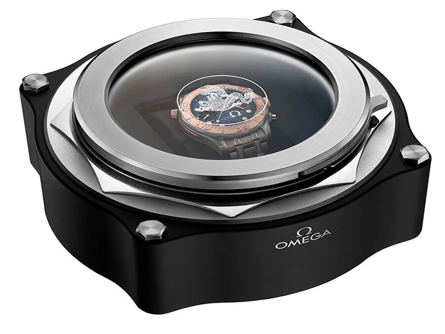 Au dos du garde-temps, l’hippocampe OMEGA est gravé au laser et laqué de blanc sur le verre saphir qui offre une vue imprenable sur le calibre OMEGA Master Co-Axial 9900, certifié par l’Institut Fédéral Suisse de Métrologie (METAS).