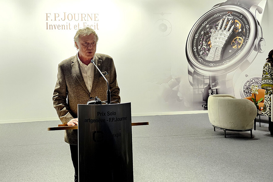 C’est lors de la 12e édition d’Artgenève, en cette soirée d’ouverture rassemblant à Palexpo les passionnés d’art, les partenaires, sponsors, VIP et institutionnels de Genève que la remise du Prix Solo – F.P. Journe s’est déroulée sur le stand F. P. Journe en présence du célèbre horloger et mécène initiateur du Prix portant son nom. Flash-back.