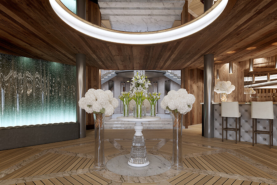 Avec une surface totale de 3850m2, le premier chalet est composé de 11 chambres dont deux chambres enfants pouvant accueillir chacune de 5 à 8 enfants. Comble du luxe, ce chalet comprend également toutes les possibilités d’activités en intérieur avec une salle de billard, un studio de yoga, un fitness entièrement équipé et l’accès direct à l’Ultima Spa & Clinic. Le deuxième chalet de ce complexe, sera quant à lui plus intimiste tout en conservant les codes du concept Ultima Chalets avec 6 chambres, un accès direct au spa et une cuisine entièrement ouverte permettant aux invités de recevoir dans une ambiance chaleureuse et conviviale. Parti pris d’élégance pour le spa, où l’on retrouve les éléments signature d’Ultima Collection lustres en cristal Baccarat, marbres Kelsey Grey et Bahia Blanca et teck pont de bateau incrusté, un design digne des plus beaux yachts. Un hammam traditionnel, un sauna, ainsi que plusieurs lits de flottaison viennent compléter ce lieu unique de relaxation.